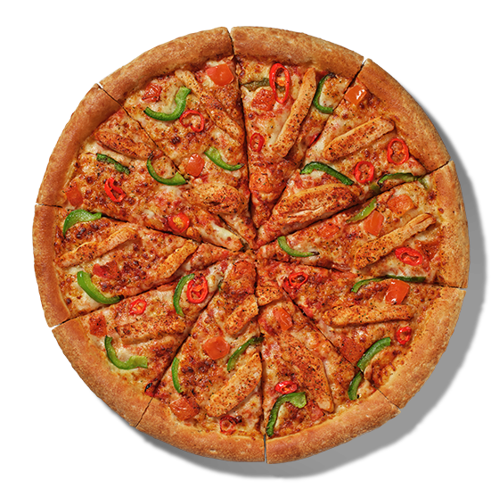 Experience the best of Italian and Mexican cuisine with our delectable Chicken Fajita pizza. Our signature tomato sauce and crisp dough base is topped with chicken, fresh tomatoes, crunchy green peppers, red chilli and spicy seasoning, and finished with our mouth-watering blend of Italian-style cheese.